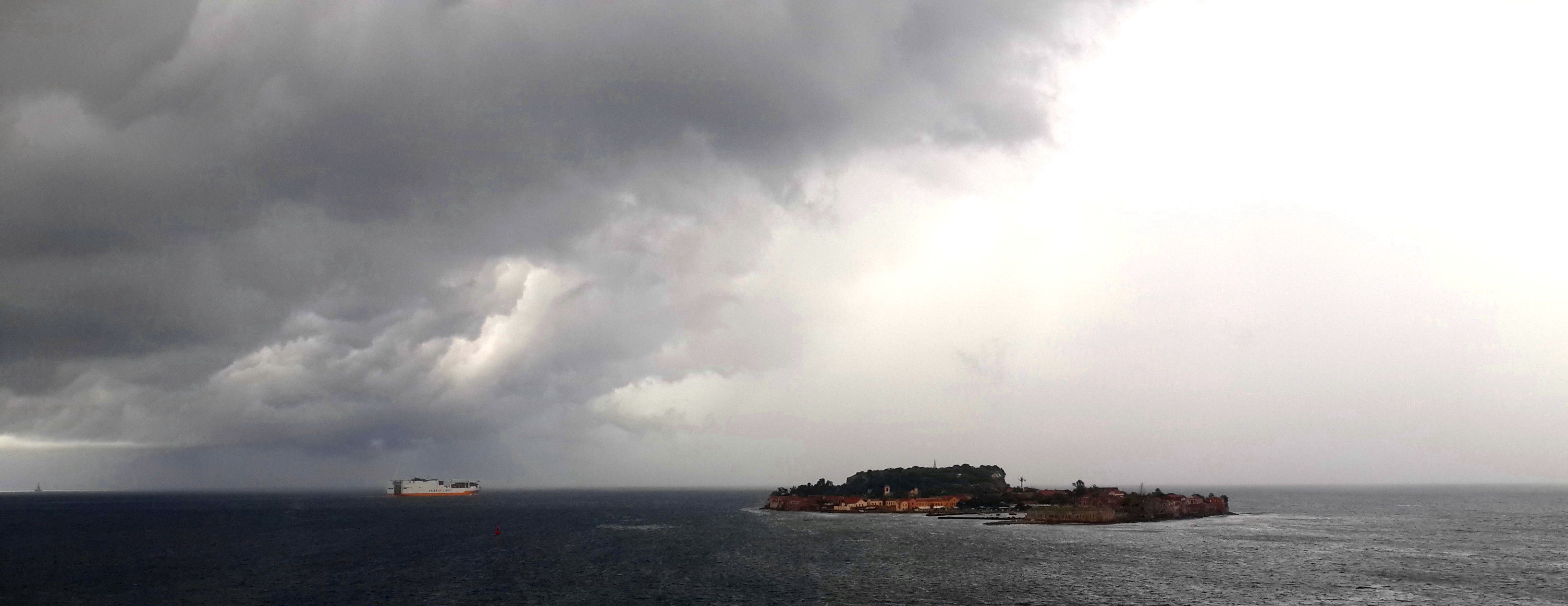 Just off-shore Senegal at ridiculously early o’clock on Day 15, we were woken by a phenomenal lightning storm and torrential rain lashing the side of the ship. The flashes of light illuminated our cabin but the sea-state remained quite calm and the rumbling thunder seemed quite distant. We guess that the West African rainy season isn’t quite over yet then 🙂 As the sun comes up, the Dakar peninsula comes clearly into view on the horizon and we get our first sight of West Africa.