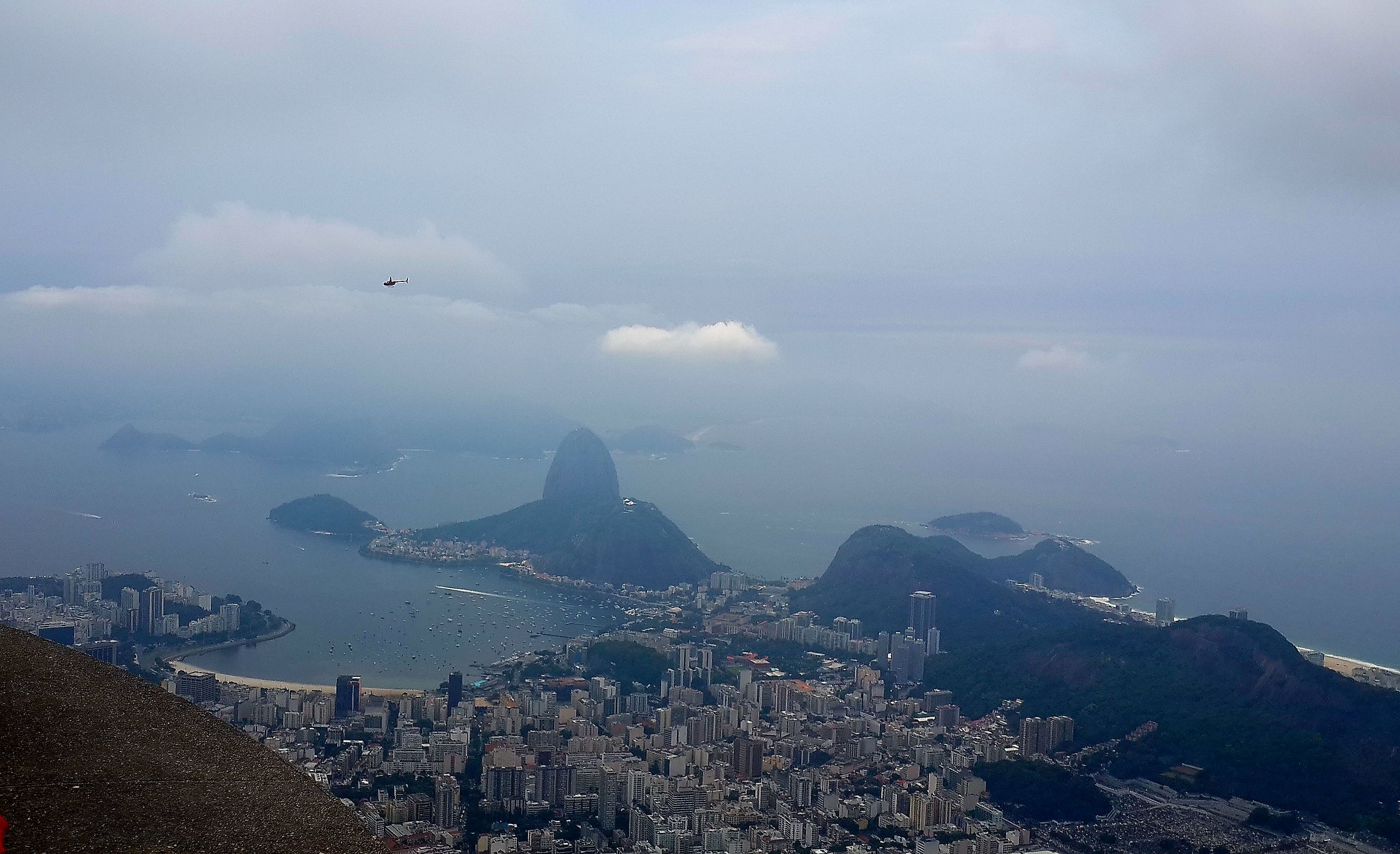 Late afternoon, we pull-up anchor and collect a local pilot to take us into the docks. The route takes us around the city, past Ipanema, Copacabana and, allegedly, under the eye of Christ the Redeemer on Corcovado. I say ‘allegedly’… unfortunately the extensive cloud-cover not only obscures Mr Jesus for all but a few moments when he appears briefly through the mist, but also makes for a very dull vista of all the other sights across Rio. Sailing into the bay, it is disappointing to have such a privileged position from which to view these spectacular sights, but have them veiled by the inconsiderate climactic conditions. Hey ho! Such is the life on the ocean waves 🙂