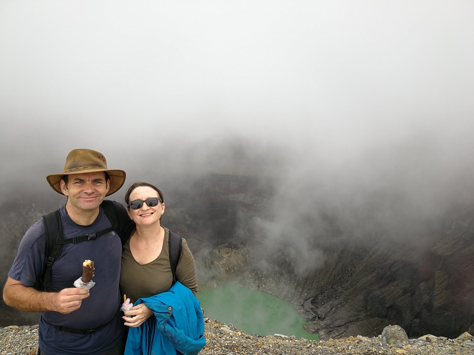 The views down into the venting crater were spectacular; we could have sat and gazed all day. But not 5 minutes after scoffing the ice-creams, the heavens opened. I mean really opened. The guide shouted for us all to descend quickly; an exposed hilltop isn’t the safest place to linger in an electrical storm. We took a few seconds to don our Gortex then hot-footed it back down the volcano. The thunder cracked around us and the rocks that we had clambered over to ascend were now predictably much more slippery.