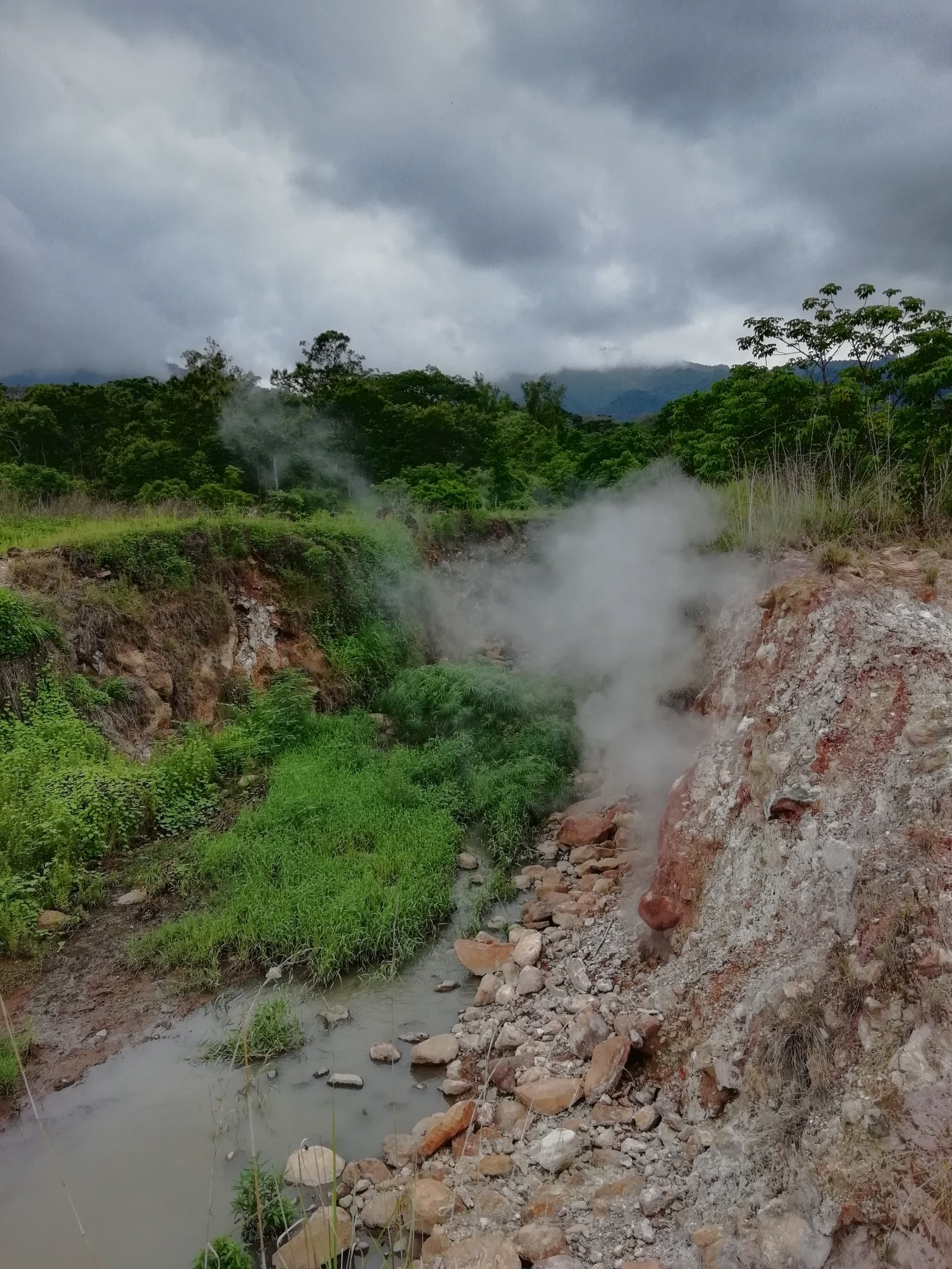 - Hot steam, gushing out of the ground