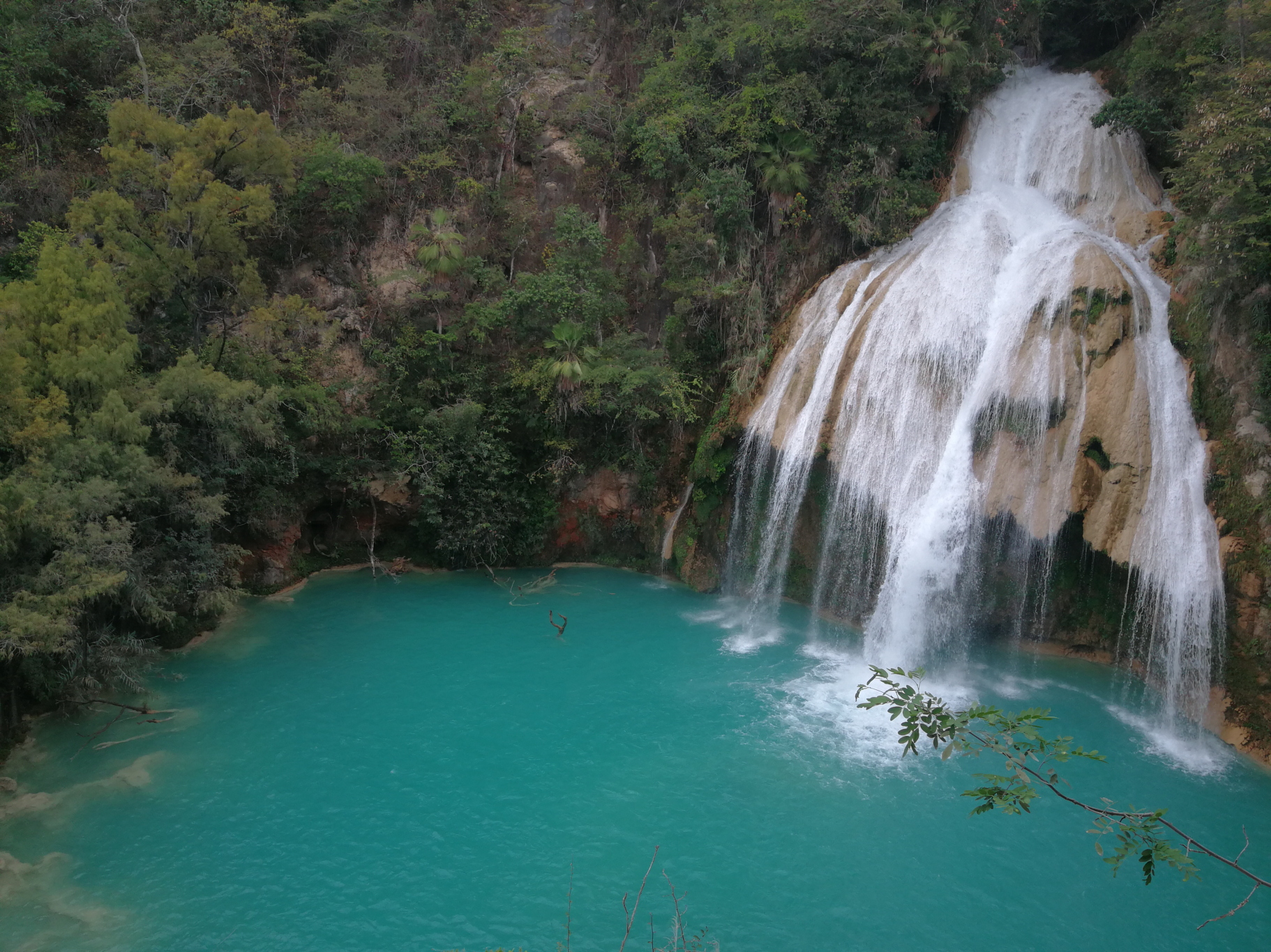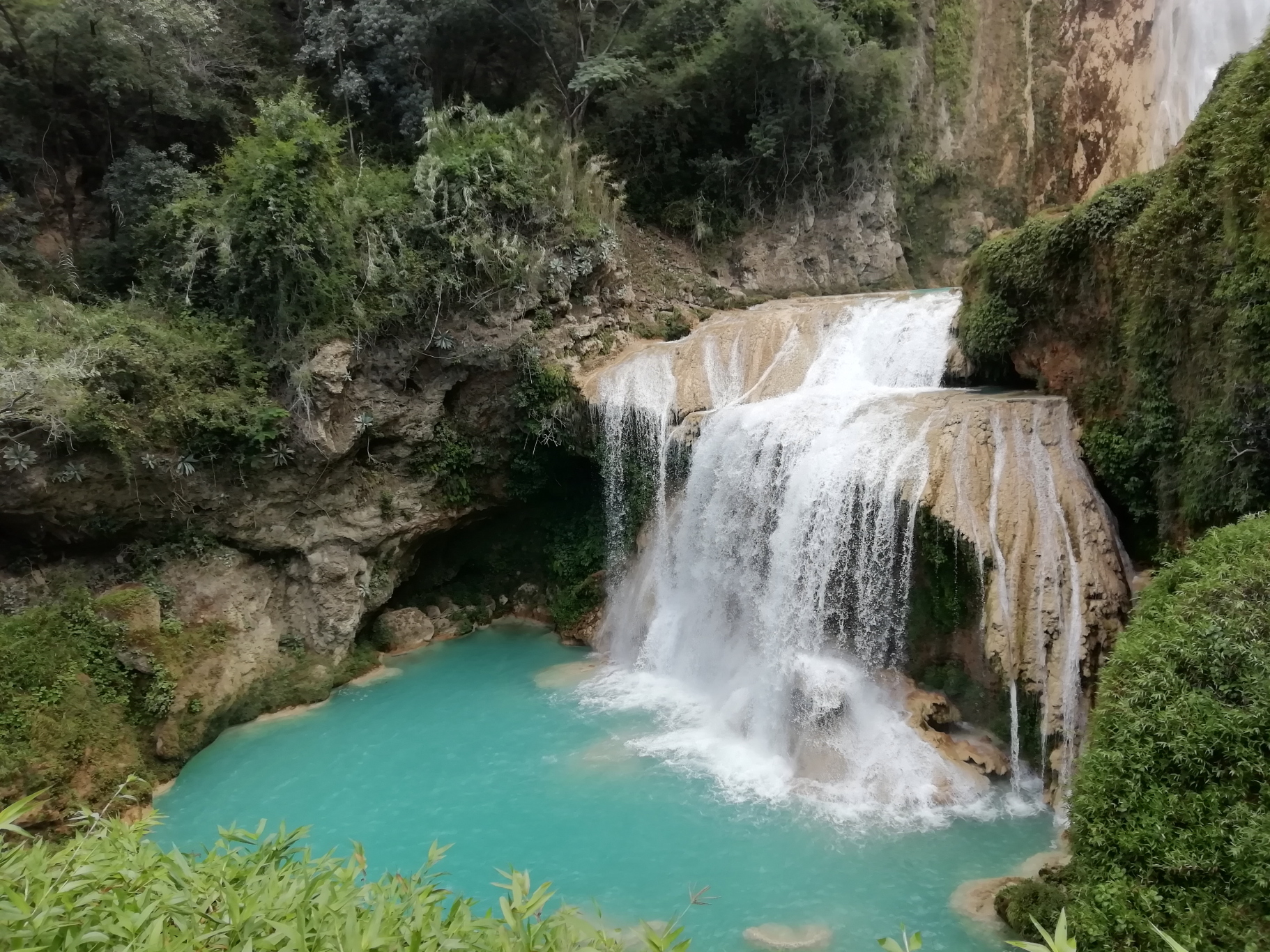 Our first stop on the Mex-307 is the fabulous Golondrinas Falls. We’ve seen a lot of waterfalls on our travels and we’re hard to impress these days, but these are worth a stop. The water tumbles over picturesque entrances to caves, into which hundreds of swallows (golondrinas… get it? The name of the falls 😊) fly at sunset to nest for the night. Very atmospheric.