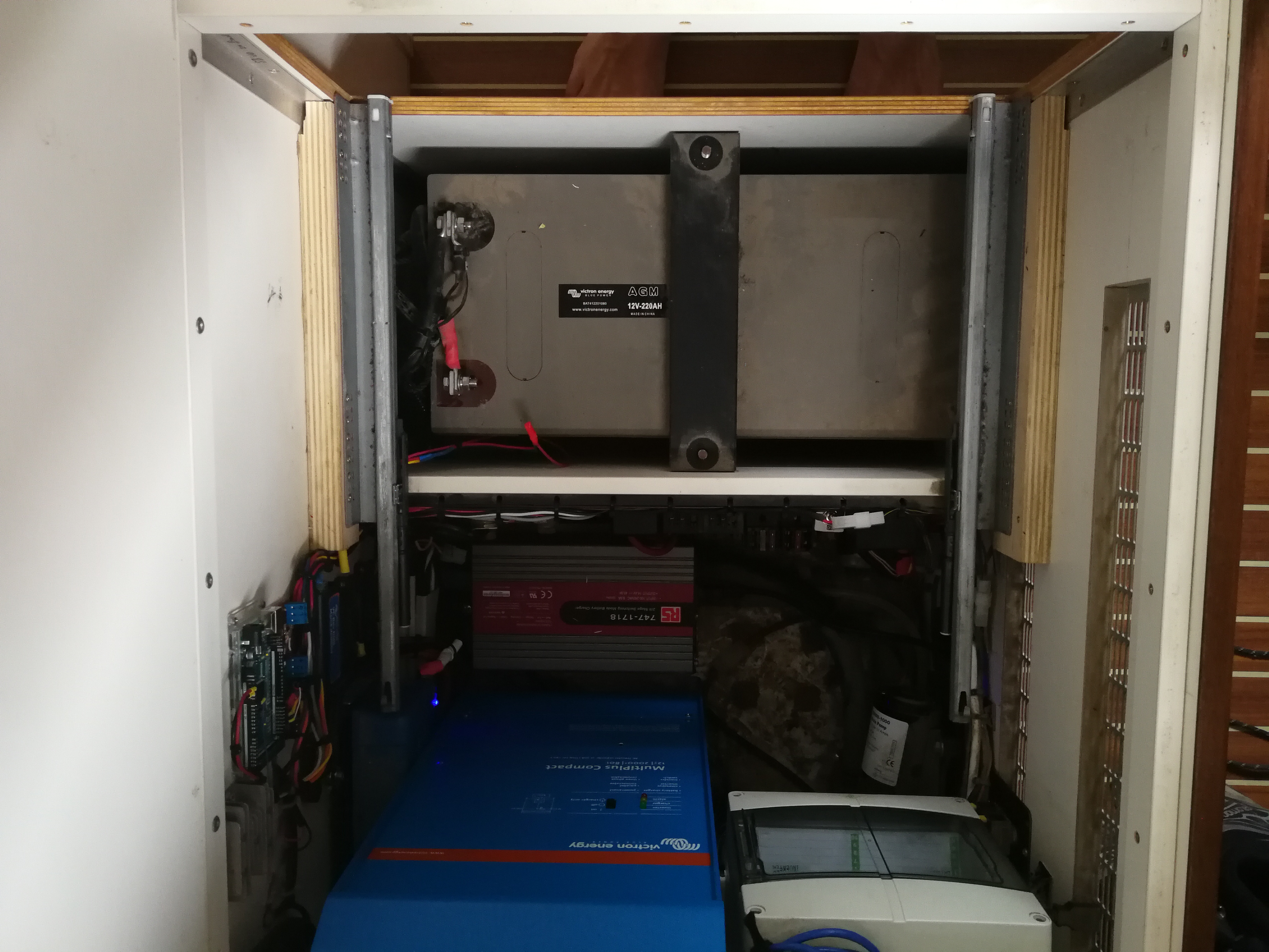 Note: chargers = Split charge relay, mains powered battery charger and both solar chargers