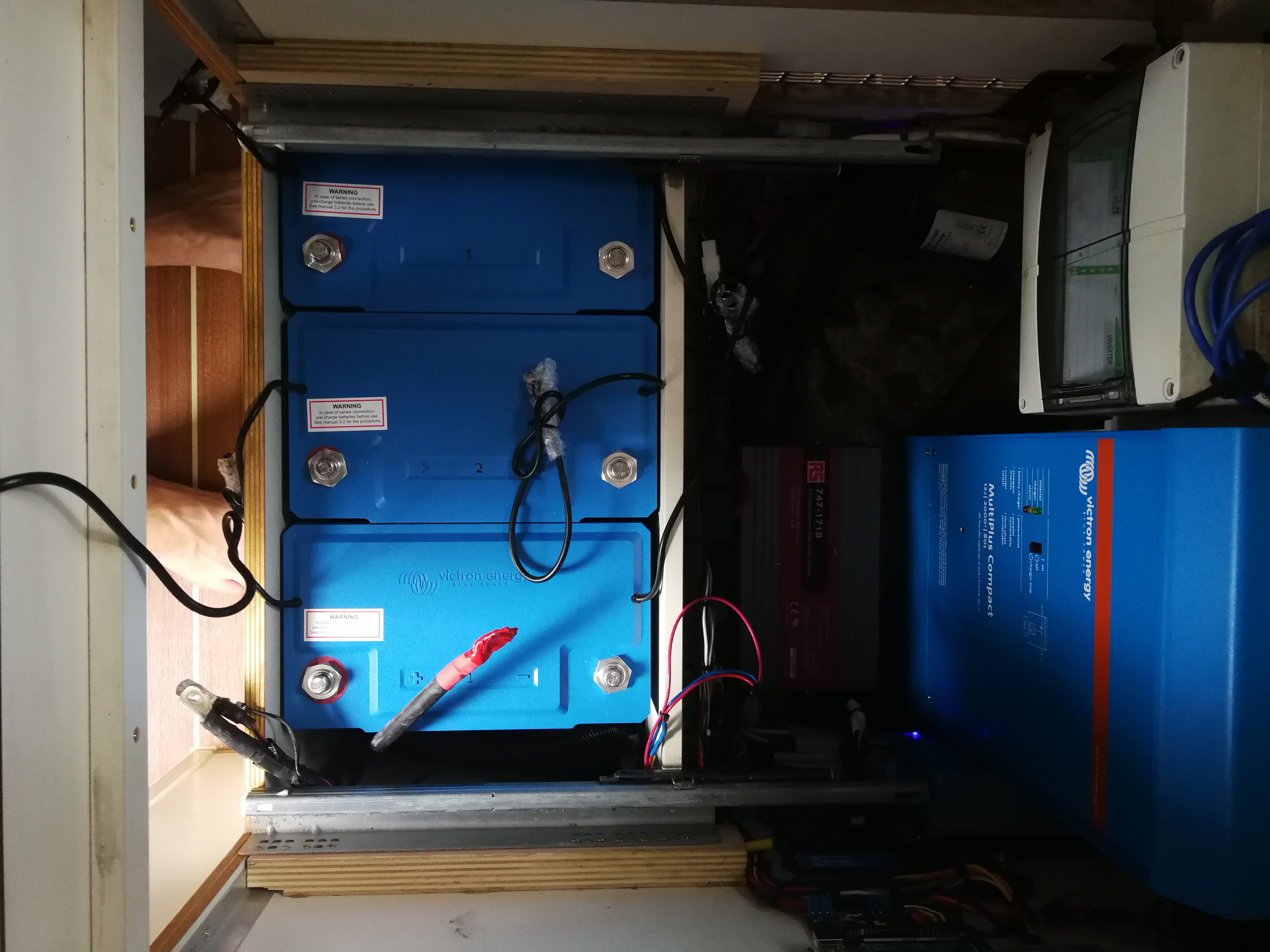 - our new bank of 3 x 90 Ah (total 270 Ah) Victron lithium batteries – price £3,230