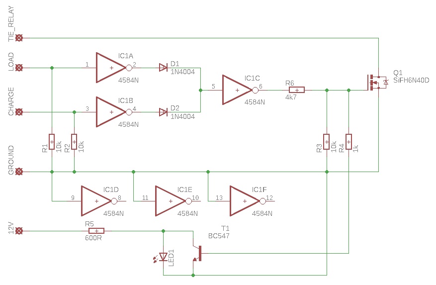 I built two interface circuits: one to isolate the second mains-charger and the second solar-charger, and one to control the second split-charge relay.